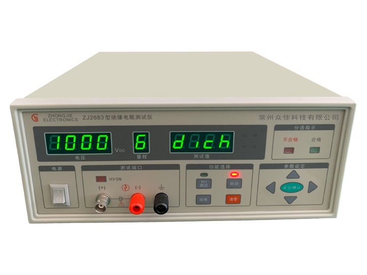 ZJ2683型绝缘电阻测试仪是一种能快速测量电子元器件、介质材料、设备和电线电缆等绝缘性能的智能型测量仪器。它独具绝缘电阻/电流双测试;绝缘阻抗、电流、测试电压档、量程档全数显,测试值保持四位有效数字;该产品具有10-1000V测试电压范围和100kΩ - 10TΩ(的绝缘电阻测量范围,操作方便,有合格/不合格判别指示,可满足大多数用户之元器件、整机、材料等的检测要求。